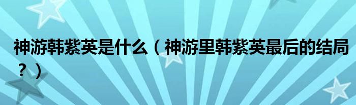 大家好,小安來為大家解答以上問題。神游韓紫英是什么,神游里韓紫英最后的結(jié)局?很多人還不知道,現(xiàn)在讓我們一起來看看吧!