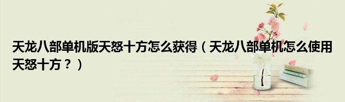 大家好,小安來為大家解答以上問題。天龍八部單機版天怒十方怎么獲得,天龍八部單機怎么使用天怒十方?很多人還不知道,現在讓我們一起來看看吧!