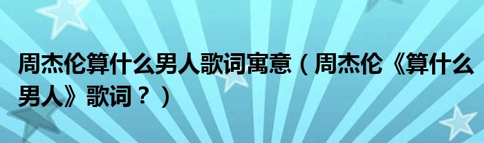 大家好,小安來為大家解答以上問題。周杰倫算什么男人歌詞寓意,周杰倫《算什么男人》歌詞?很多人還不知道,現在讓我們一起來看看吧!