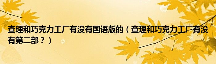 大家好,小安來為大家解答以上問題。查理和巧克力工廠有沒有國語版的,查理和巧克力工廠有沒有第二部?很多人還不知道,現在讓我們一起來看看吧!