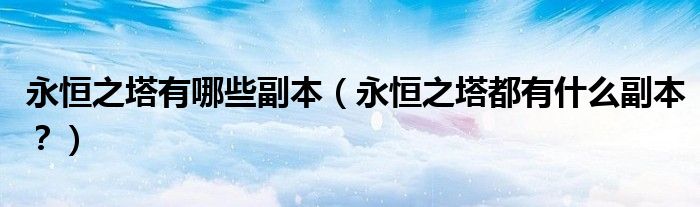 大家好,小安來為大家解答以上問題。永恒之塔有哪些副本,永恒之塔都有什么副本?很多人還不知道,現在讓我們一起來看看吧!