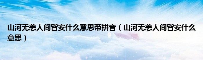 大家好,小安來為大家解答以上問題。山河無恙人間皆安什么意思帶拼音,山河無恙人間皆安什么意思很多人還不知道,現(xiàn)在讓我們一起來看看吧!