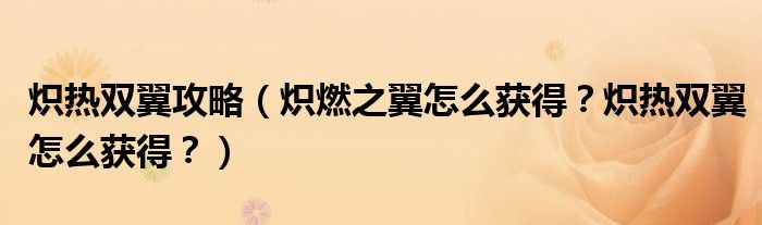 大家好,小安來為大家解答以上問題。熾熱雙翼攻略,熾燃之翼怎么獲得?熾熱雙翼怎么獲得?很多人還不知道,現在讓我們一起來看看吧!
