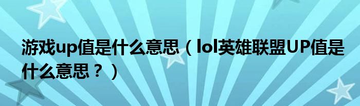 大家好,小安來為大家解答以上問題。游戲up值是什么意思,lol英雄聯盟UP值是什么意思?很多人還不知道,現在讓我們一起來看看吧!