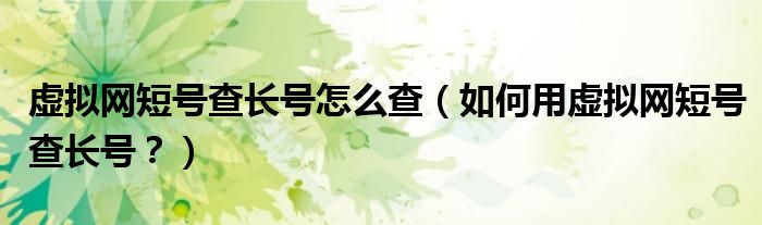 大家好,小安來為大家解答以上問題。虛擬網(wǎng)短號查長號怎么查,如何用虛擬網(wǎng)短號查長號?很多人還不知道,現(xiàn)在讓我們一起來看看吧!