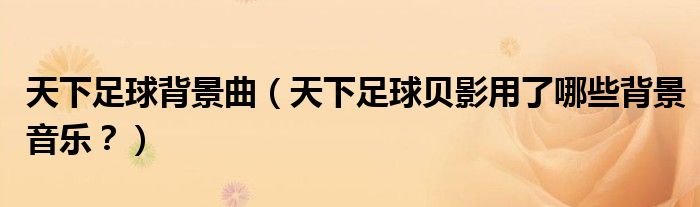 大家好,小安來為大家解答以上問題。天下足球背景曲,天下足球貝影用了哪些背景音樂?很多人還不知道,現(xiàn)在讓我們一起來看看吧!