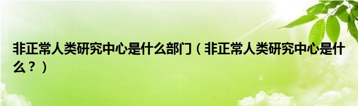 大家好,小安來為大家解答以上問題。非正常人類研究中心是什么部門,非正常人類研究中心是什么?很多人還不知道,現在讓我們一起來看看吧!