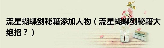 大家好,小安來為大家解答以上問題。流星蝴蝶劍秘籍添加人物,流星蝴蝶劍秘籍大絕招?很多人還不知道,現在讓我們一起來看看吧!