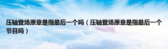 大家好,小安來為大家解答以上問題。壓軸登場原意是指最后一個嗎,壓軸登場原意是指最后一個節目嗎很多人還不知道,現在讓我們一起來看看吧!