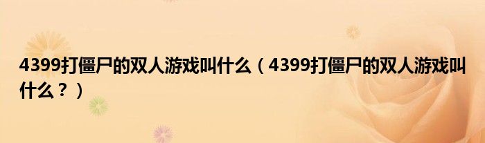 大家好,小安來為大家解答以上問題。4399打僵尸的雙人游戲叫什么,4399打僵尸的雙人游戲叫什么?很多人還不知道,現在讓我們一起來看看吧!