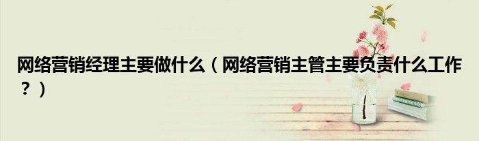 大家好,小安來為大家解答以上問題。網絡營銷經理主要做什么,網絡營銷主管主要負責什么工作?很多人還不知道,現在讓我們一起來看看吧!