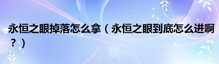 大家好,小安來為大家解答以上問題。永恒之眼掉落怎么拿,永恒之眼到底怎么進?。亢芏嗳诉€不知道,現在讓我們一起來看看吧!