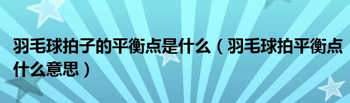 大家好,小安來為大家解答以上問題。羽毛球拍子的平衡點(diǎn)是什么,羽毛球拍平衡點(diǎn)什么意思很多人還不知道,現(xiàn)在讓我們一起來看看吧!