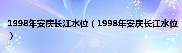 大家好,小安來為大家解答以上問題。1998年安慶長江水位,1998年安慶長江水位很多人還不知道,現在讓我們一起來看看吧!