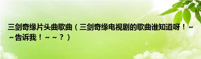 大家好,小安來為大家解答以上問題。三劍奇緣片頭曲歌曲,三劍奇緣電視劇的歌曲誰知道呀!~~告訴我!~~?很多人還不知道,現在讓我們一起來看看吧!