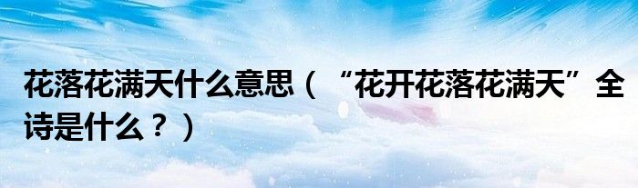 大家好,小安來為大家解答以上問題?;浠M天什么意思,“花開花落花滿天”全詩是什么?很多人還不知道,現在讓我們一起來看看吧!