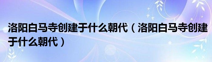 大家好,小安來為大家解答以上問題。洛陽白馬寺創(chuàng)建于什么朝代,洛陽白馬寺創(chuàng)建于什么朝代很多人還不知道,現(xiàn)在讓我們一起來看看吧!