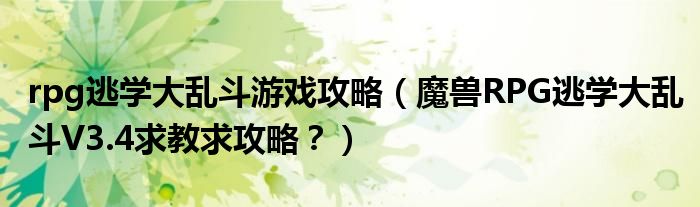 大家好,小安來為大家解答以上問題。rpg逃學大亂斗游戲攻略,魔獸RPG逃學大亂斗V3.4求教求攻略?很多人還不知道,現在讓我們一起來看看吧!