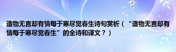 大家好,小安來為大家解答以上問題。造物無言卻有情每于寒盡覺春生詩句賞析,“造物無言卻有情每于寒盡覺春生”的全詩和譯文?很多人還不知道,現在讓我們一起來看看吧!