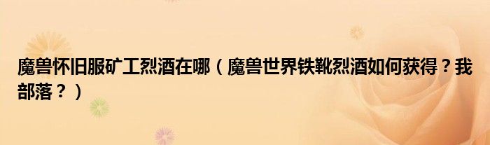 大家好,小安來為大家解答以上問題。魔獸懷舊服礦工烈酒在哪,魔獸世界鐵靴烈酒如何獲得?我部落?很多人還不知道,現在讓我們一起來看看吧!