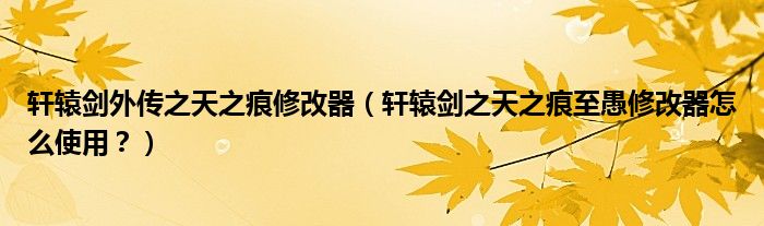 大家好,小安來為大家解答以上問題。軒轅劍外傳之天之痕修改器,軒轅劍之天之痕至愚修改器怎么使用?很多人還不知道,現在讓我們一起來看看吧!