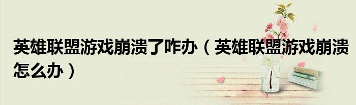 大家好,小安來為大家解答以上問題。英雄聯(lián)盟游戲崩潰了咋辦,英雄聯(lián)盟游戲崩潰怎么辦很多人還不知道,現(xiàn)在讓我們一起來看看吧!