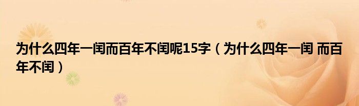 1、 之所以每四年閏,每一百年不閏,是因為平均一年按365天計算,每四年按近24小時計算。第四年的二月增加一天,所以每四年就是一個閏年。在一天的24點,這每四年增加44分56秒。每100年,多算近一天,所以百年無閏。