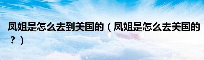 大家好,小安來為大家解答以上問題。鳳姐是怎么去到美國的,鳳姐是怎么去美國的?很多人還不知道,現在讓我們一起來看看吧!