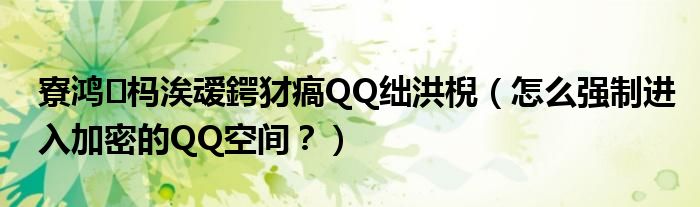 大家好,小安來為大家解答以上問題。寮鴻榪涘叆鍔犲瘑QQ絀洪棿,怎么強制進入加密的QQ空間?很多人還不知道,現(xiàn)在讓我們一起來看看吧!