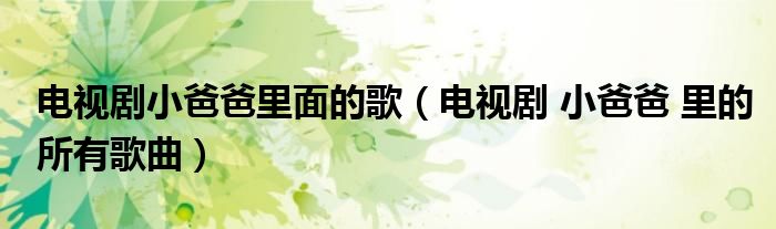 大家好,小安來為大家解答以上問題。電視劇小爸爸里面的歌,電視劇 小爸爸 里的所有歌曲很多人還不知道,現在讓我們一起來看看吧!