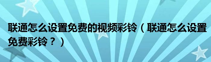 大家好,小安來為大家解答以上問題。聯通怎么設置免費的視頻彩鈴,聯通怎么設置免費彩鈴?很多人還不知道,現在讓我們一起來看看吧!