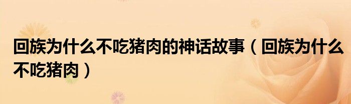 大家好,小安來為大家解答以上問題?;刈鍨槭裁床怀载i肉的神話故事,回族為什么不吃豬肉很多人還不知道,現(xiàn)在讓我們一起來看看吧!