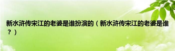 大家好,小安來為大家解答以上問題。新水滸傳宋江的老婆是誰扮演的,新水滸傳宋江的老婆是誰?很多人還不知道,現在讓我們一起來看看吧!