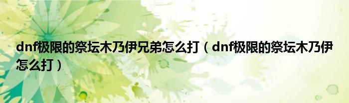 大家好,小安來為大家解答以上問題。dnf極限的祭壇木乃伊兄弟怎么打,dnf極限的祭壇木乃伊怎么打很多人還不知道,現(xiàn)在讓我們一起來看看吧!