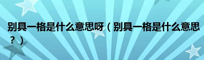 大家好,小安來為大家解答以上問題。別具一格是什么意思呀,別具一格是什么意思?很多人還不知道,現在讓我們一起來看看吧!
