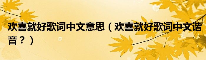 大家好,小安來為大家解答以上問題。歡喜就好歌詞中文意思,歡喜就好歌詞中文諧音?很多人還不知道,現在讓我們一起來看看吧!