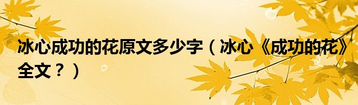 大家好,小安來為大家解答以上問題。冰心成功的花原文多少字,冰心《成功的花》全文?很多人還不知道,現在讓我們一起來看看吧!