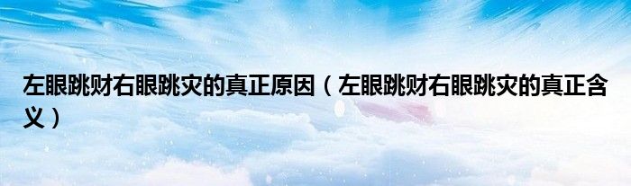 大家好,小安來為大家解答以上問題。左眼跳財右眼跳災的真正原因,左眼跳財右眼跳災的真正含義很多人還不知道,現在讓我們一起來看看吧!