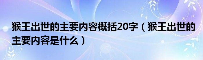 大家好,小安來為大家解答以上問題。猴王出世的主要內容概括20字,猴王出世的主要內容是什么很多人還不知道,現在讓我們一起來看看吧!