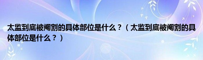 大家好,小安來為大家解答以上問題。太監(jiān)到底被閹割的具體部位是什么?,太監(jiān)到底被閹割的具體部位是什么?很多人還不知道,現(xiàn)在讓我們一起來看看吧!