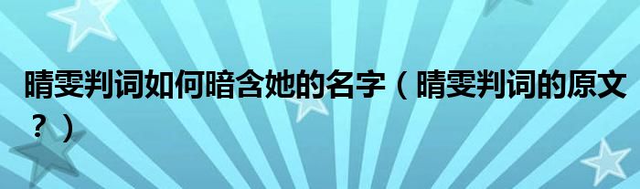 大家好,小安來為大家解答以上問題。晴雯判詞如何暗含她的名字,晴雯判詞的原文?很多人還不知道,現(xiàn)在讓我們一起來看看吧!