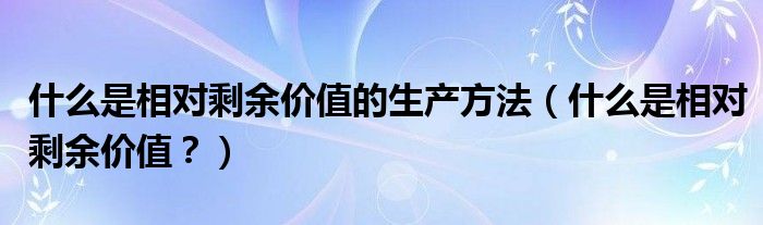 大家好,小安來為大家解答以上問題。什么是相對(duì)剩余價(jià)值的生產(chǎn)方法,什么是相對(duì)剩余價(jià)值?很多人還不知道,現(xiàn)在讓我們一起來看看吧!