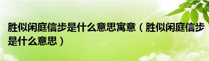 大家好,小安來為大家解答以上問題。勝似閑庭信步是什么意思寓意,勝似閑庭信步是什么意思很多人還不知道,現在讓我們一起來看看吧!