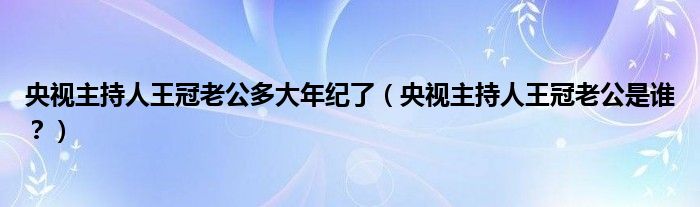 大家好,小安來為大家解答以上問題。央視主持人王冠老公多大年紀了,央視主持人王冠老公是誰?很多人還不知道,現在讓我們一起來看看吧!