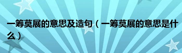 大家好,小安來為大家解答以上問題。一籌莫展的意思及造句,一籌莫展的意思是什么很多人還不知道,現在讓我們一起來看看吧!
