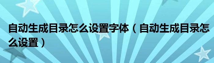 大家好,小安來為大家解答以上問題。自動生成目錄怎么設(shè)置字體,自動生成目錄怎么設(shè)置很多人還不知道,現(xiàn)在讓我們一起來看看吧!