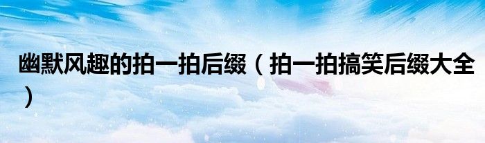 大家好,小安來為大家解答以上問題。幽默風趣的拍一拍后綴,拍一拍搞笑后綴大全很多人還不知道,現在讓我們一起來看看吧!