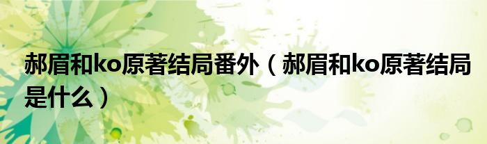 大家好,小安來為大家解答以上問題。郝眉和ko原著結局番外,郝眉和ko原著結局是什么很多人還不知道,現在讓我們一起來看看吧!