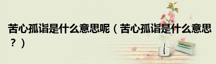 大家好,小安來為大家解答以上問題。苦心孤詣是什么意思呢,苦心孤詣是什么意思?很多人還不知道,現在讓我們一起來看看吧!