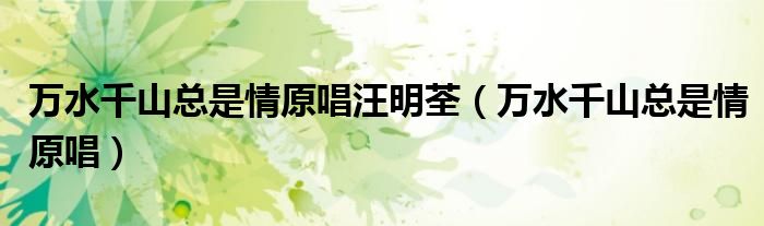 大家好,小安來(lái)為大家解答以上問(wèn)題。萬(wàn)水千山總是情原唱汪明荃,萬(wàn)水千山總是情原唱很多人還不知道,現(xiàn)在讓我們一起來(lái)看看吧!